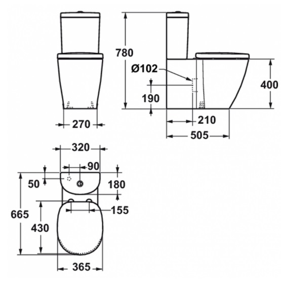 CONNECT Напольный унитаз для монтажа с бачком, горизонтальный выпуск, с крепежом TT0257919. Бачок и сидение/крышка заказываются отдельно.