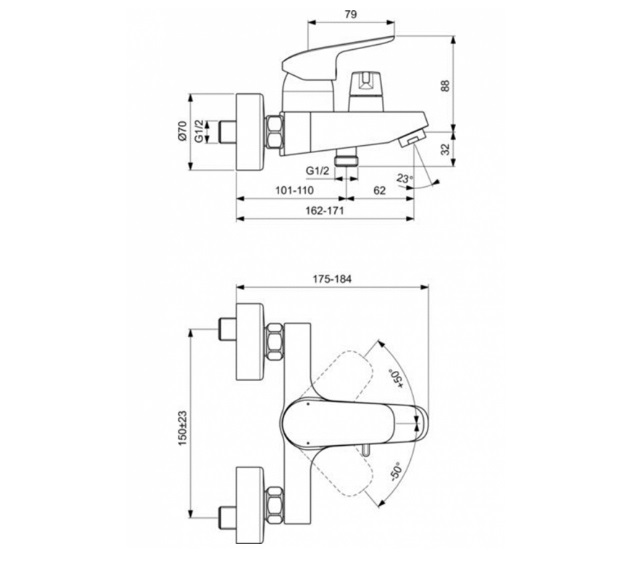 CERAFLEX Настенный однорычажный смеситель для ванны/душа,